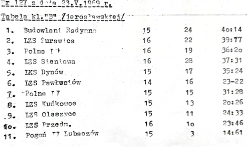 Budowlani Radymno 11:1 ZKS Pogoń Lubaczów (Kolejka XVI) Data: 18.05.1969